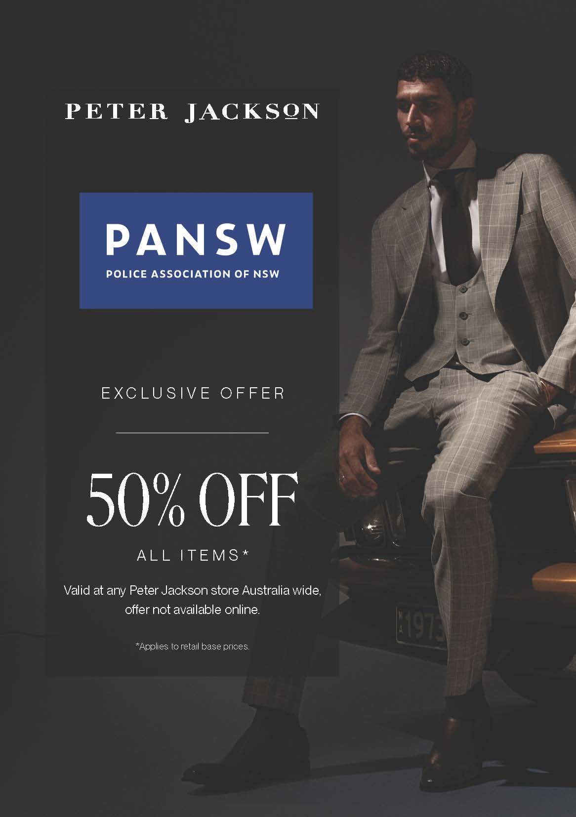 Everyday heroes, everyday style: Peter Jackson proudly supports the Police Association of NSW.